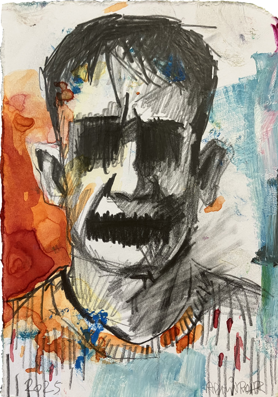 Ein Blatt vom Januar diesen Jahres; es wie nie fertig. Heute habe ich es überarbeitet. Den Faden habe ich ein wenig aus dem Auge verloren. Aus der Idee ist dann noch dieses Bild für die Ausstellung in Neunkirchen entstanden.