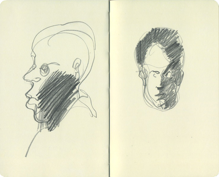 Bleistift, Skizzenbuch (Ausschnitt), ca. 25 x 38 cm (geöffnet)