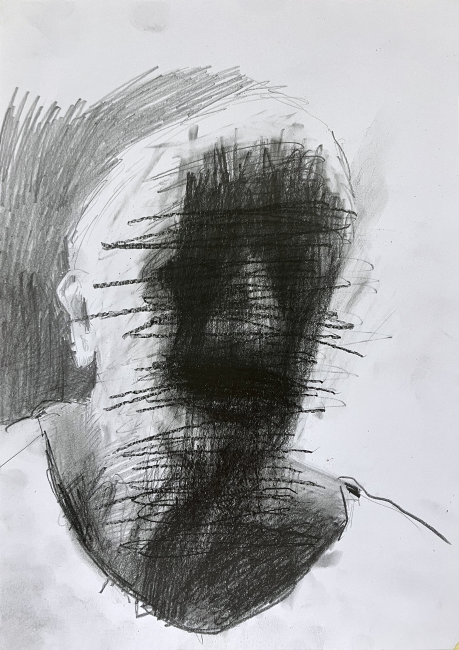 Jetzt ist er doch noch fertig geworden. Allerdings ganz anders, als geplant. Was blieb war die Figur im Zentrum der Leinwand. Und Bäume. Bäume im Hintergrund. Und die Schatten führen ein Eigenleben.