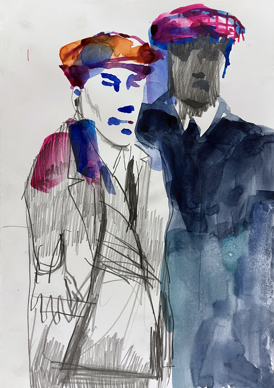 Kohle, Öl auf Papier, 42 x 29,7 cm